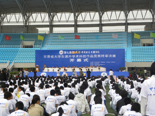 4月25日至27日,由共青团甘肃省委、甘肃省教育厅、甘肃省科协、甘肃省学联主办、西北民族大学承办的第七届“挑战杯”甘肃省大学生课外学术科技作品竞赛终审决赛开幕式在西北民族大学校榆中校区体育场内隆重举行。副省长张晓兰,省政协副主席李永军出席开幕式。团省委书记王永前、副书记张旭晨,西北民族大学校长赵德安、党委副书记王扎西,beat365党委副书记王汝锋与省委宣传部、省教育厅、省科技厅等相关单位领导一同出席了开幕式并在主席台就坐。校团委组织学校全体专职团干部和学生代表共五十余人前往民大进行了观摩学习。