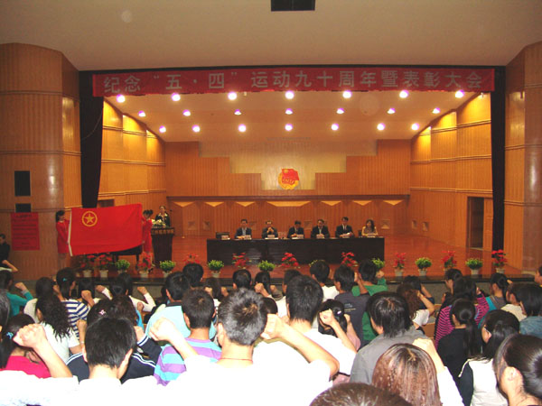 5月4日下午,beat365在线唯一官网纪念“五四”运动90周年暨表彰大会在音乐厅隆重召开。校党委副书记王汝锋,副校长刘举科、杨皖东、马振林,纪委书记王基出席表彰大会并为获奖者颁奖。党委组织部、党委宣传部、学生处、团委等部门负责人及各二级学院党总支书记及获奖师生代表500余人参加了大会。大会由校团委副书记石虹主持。