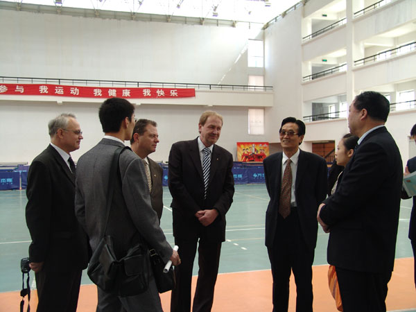3月24日上午,beat365党委书记王兴隆教授、副校长刘举科、副校长杨皖东代表beat365向白俄罗斯国立大学来访嘉宾表示了热烈的欢迎。在王兴隆书记等陪同下,来访嘉宾参观了校本部、培黎校区有关院系实验室设备,以及美术系教师现场授课情景、体育馆、学生食堂等场所。当日下午,双方领导就两校学术交流与合作的方式、方法、学生互派、教师互派、教师进修、招生条件、教学内容、学生生活安排以及两校在合作项目中的职责分工等友好合作内容在综合楼一楼会议室进行了卓有成效的磋商。