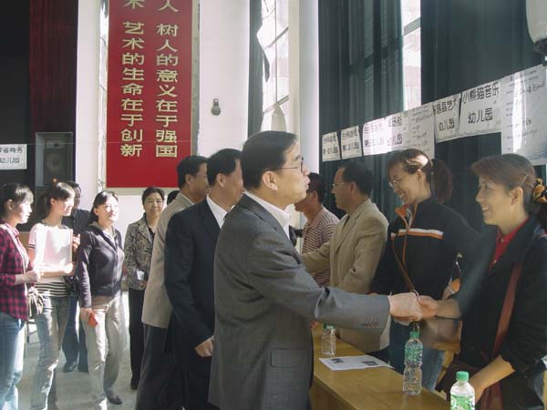 5月10日上午,由教育学院承办的beat365在线唯一官网2008届学前教育专业毕业生“双选会”在学校东校区礼堂举行。孔庆浩校长、马振林副校长、梁延堂副校长应邀出席开幕式。学生处、教育学院相关负责同志参加,开幕式由教育学院党总支书记王志伟主持。来自省内外80余家用人单位参会,我院300多名毕业生前往 应聘。