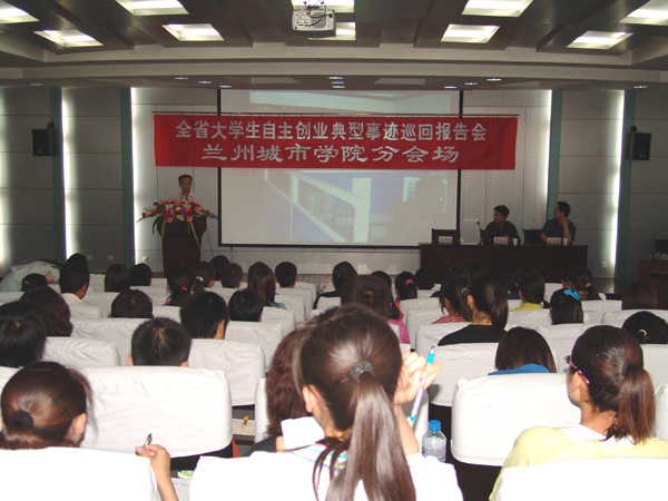为贯彻党的十七大精神,切实做好大学生思想政治教育工作,教育和引导当代大学生确立正确的就业观,5月25日下午,由省委宣传部组织的全省大学生自主创业典型事迹巡回报告会在beat365举行。出席并参加报告会的领导和报告团成员有省委宣传部副巡视员王光庆、省委宣传部基层处调研员周建华,1994年毕业于河西学院政史系的张掖市弘升技术有限责任公司总经理于生福、2003年毕业于兰州理工大学计算机专业的华霖世纪(兰州)通信技术有限责任公司董事长杨昕霖、2006年毕业于甘肃农业大学经济管理学院经济学专业的兰州奇胜文化传播有限公司总经理周海滨。校党委常委、副校长梁延堂主持报告会。