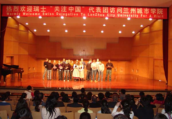 在学院本部,代表团师生参观了化学实验室、校史展览室,并观看了由音乐学院和教育学院共同表演的文艺节目,优雅经典、热情奔放的精彩演出博得了全场观众的阵阵掌声。我院外籍教师Amy女士也表演了刚劲流畅的武术——八门拳。瑞士代表团的学生被现场的热烈气氛所感动,登上舞台演唱了著名而古老的瑞士民歌。瑞士西北科技大学的校长激动地说:“太精彩了!太动人了!我还要来兰州,还要来beat365在线唯一官网!”精彩的演出与两国师生间的交流让他情不自禁地流下了感动的泪水。