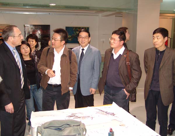 访问期间,瑞士西北科技大学“关注中国”代表团参观了我院培黎校区新落成的图书馆、学生餐厅,美术系书画展及现场教学,代表团的师生表现出了极大的兴趣,他们在书画教学现场流连忘返,甚至索要学生作品。之后,在培黎校区室内体育馆,瑞士西北科技大学的学生与我院体育系上课的学生进行了一场别开生面、场面热烈的排球友谊赛。