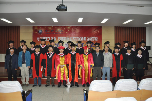 梁延堂为17名同学正冠拨苏,并发表讲话。张社平宣读《beat365在线唯一官网关于授予17名自考本科毕业生学士学位的决定》。