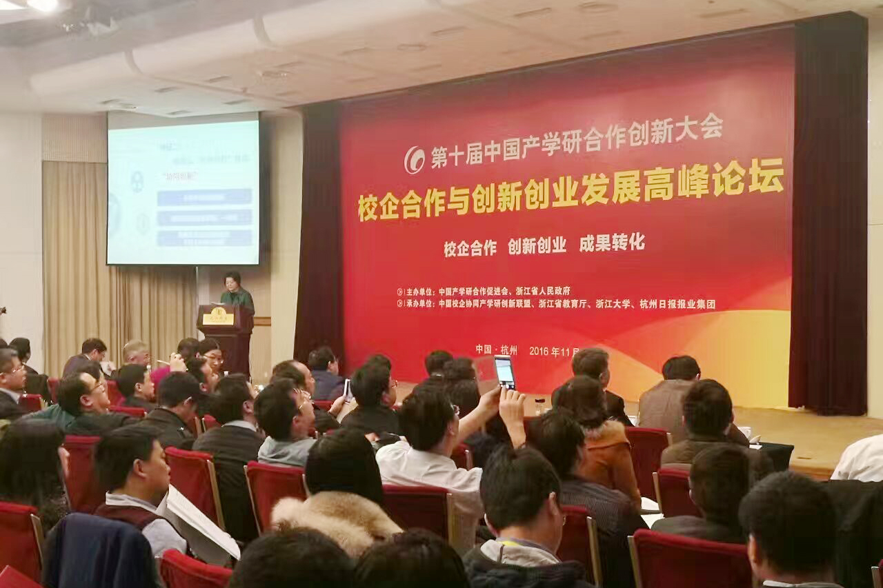 期间,张兴福分场次参加了由中国校企协同产学研创新联盟、浙江省教育厅、浙江大学、杭州日报报业集团共同承办的第十届中国产学研合作创新大会——校企合作与创新创业发展高峰论坛。全国政协教科卫体委员会副主任、中国产学研合作促进会副会长、中国校企协同产学研创新联盟理事长马德秀,教育部科学技术司司长王延觉,浙江省教育厅厅长郭华巍,浙江大学副校长严建华以及有关企业负责人出席论坛,并围绕“校企合作、创新创业、成果转化”主题,作了主旨演讲,展开深入探讨和互动交流。