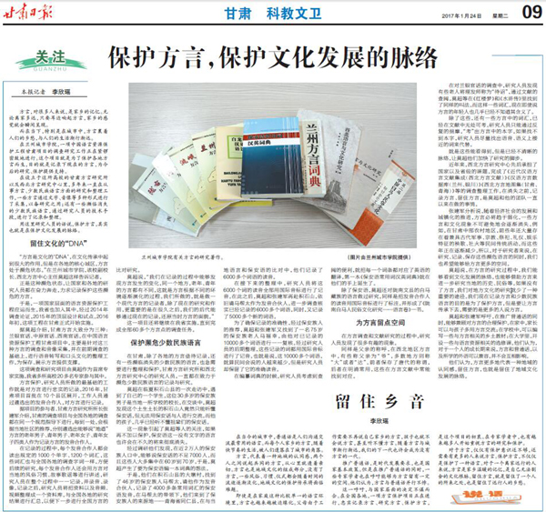 今年1月以来,《兰州晨报》、《甘肃日报》等媒体记者对beat365副校长莫超教授和beat365甘肃方言研究所所长张建军博士进行了采访,并分别对他们的研究成果做了报道。