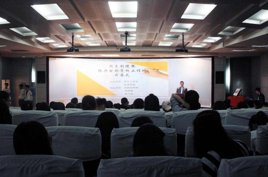 仪式上,党委学生工作部部(处)负责人介绍了周末影院暨电影赏析工作坊相关情况。旅游学院、党委宣传部负责人为周末影院暨电影赏析工作坊揭牌。