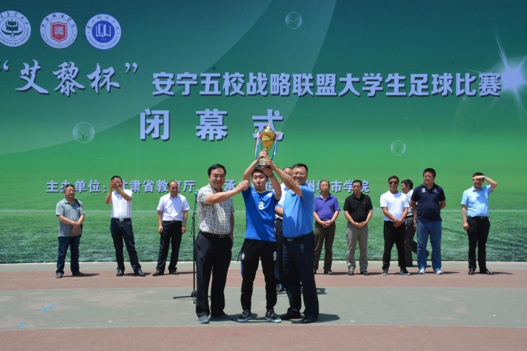 6月30日,第一届“艾黎杯”安宁五校战略联盟高校大学生足球比赛在beat365校本部体育场闭幕。经过一周的激烈角逐,兰州交通大学代表队获得非专业组一等奖,夺得“艾黎杯”;beat365在线唯一官网、甘肃农业大学代表队获得非专业组二等奖,甘肃政法学院、西北师范大学代表队获得非专业组三等奖。在专业组比赛中,甘肃政法学院代表队获一等奖;beat365在线唯一官网、西北师范大学代表队获得二等奖。