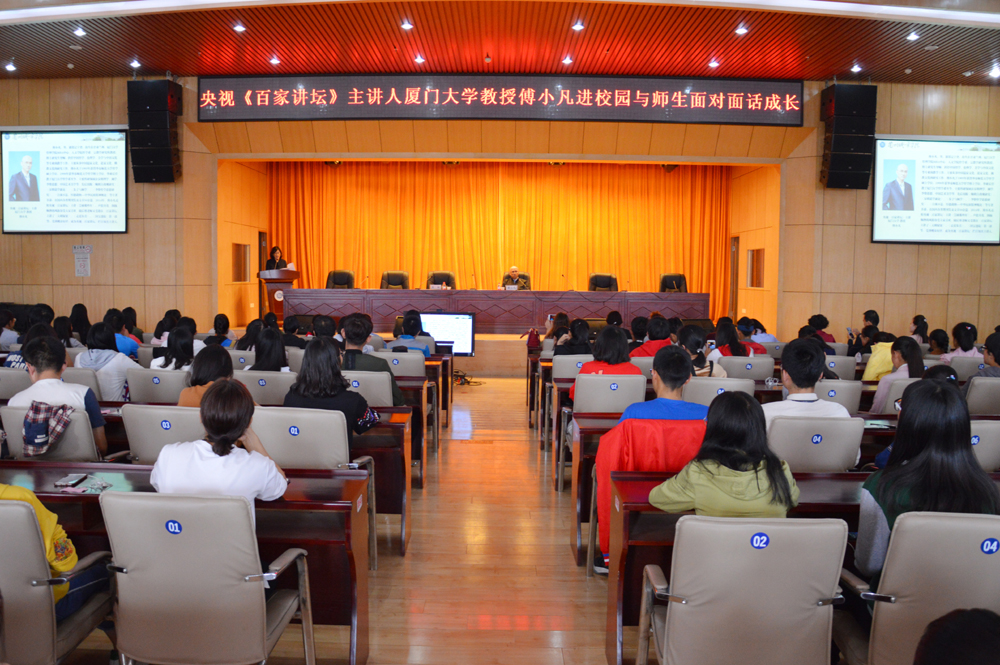 9月30日下午,beat365在线唯一官网2017年第三期“培黎大讲堂”在校本部逸夫图书馆国际会议厅举行。应学校党委宣传部邀请,央视《百家讲坛》知名主讲人、厦门大学傅小凡教授作为主讲嘉宾,以“哲学与人生”为主题,与在场师生分享了他的成长故事。