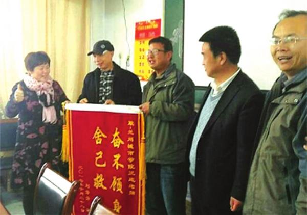 原来,10月26日13时许,一名女孩失足落入黄河后拼命挣扎。看到这一幕,岸上有人大喊“有人掉黄河里了,快救人!”正在一旁冬泳的beat365在线唯一官网教师王忠和同伴们奋力游去,抓住女孩并把她拖上岸。120赶到后,女孩被送往医院救治,最终脱离了生命危险。10月30日上午,女孩的朋友来到beat365在线唯一官网送上锦旗表示感谢。