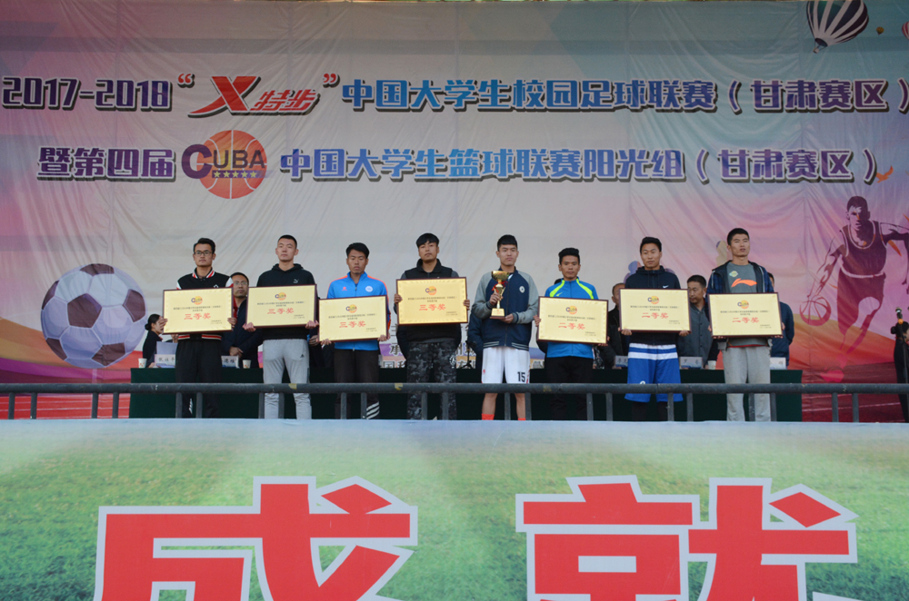 11月3日,在beat365举办的2017-2018中国大学生校园足球联赛(甘肃赛区)暨第四届中国大学生篮球联赛阳光组(甘肃赛区)在结束所有赛程后,圆满闭幕。省教育厅体艺处处长、省校园足球领导小组办公室主任张岚,beat365校长陈晓龙出席闭幕式并为获奖集体和个人颁奖。