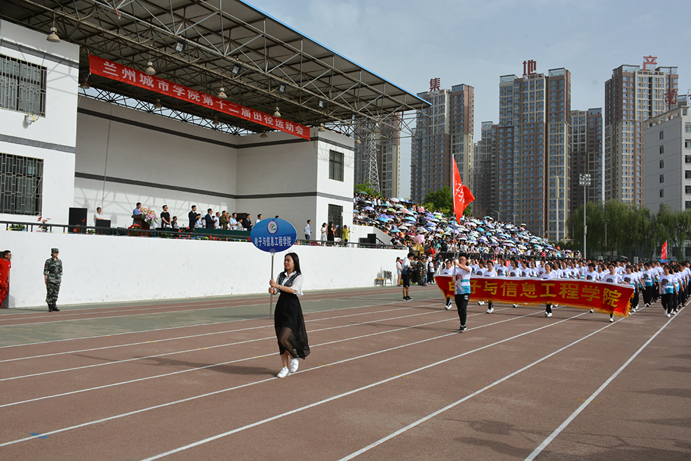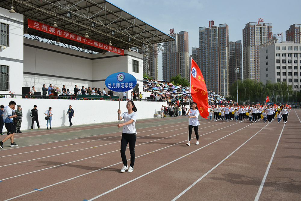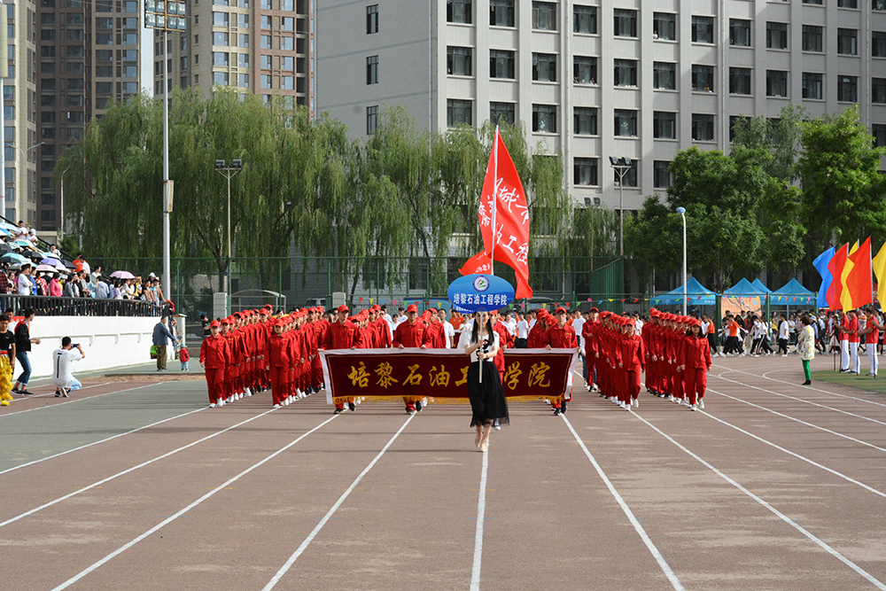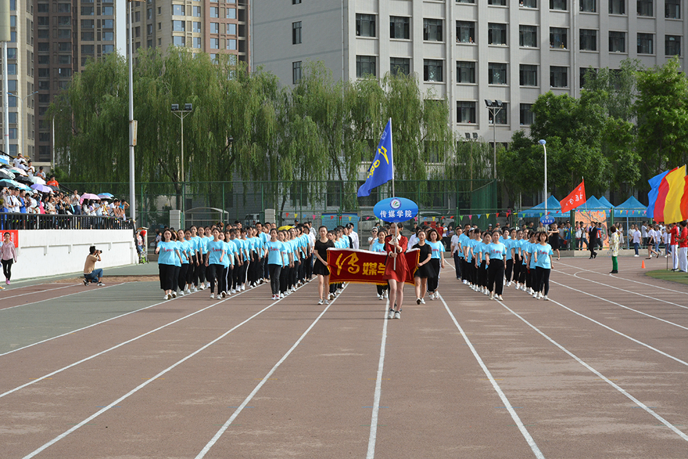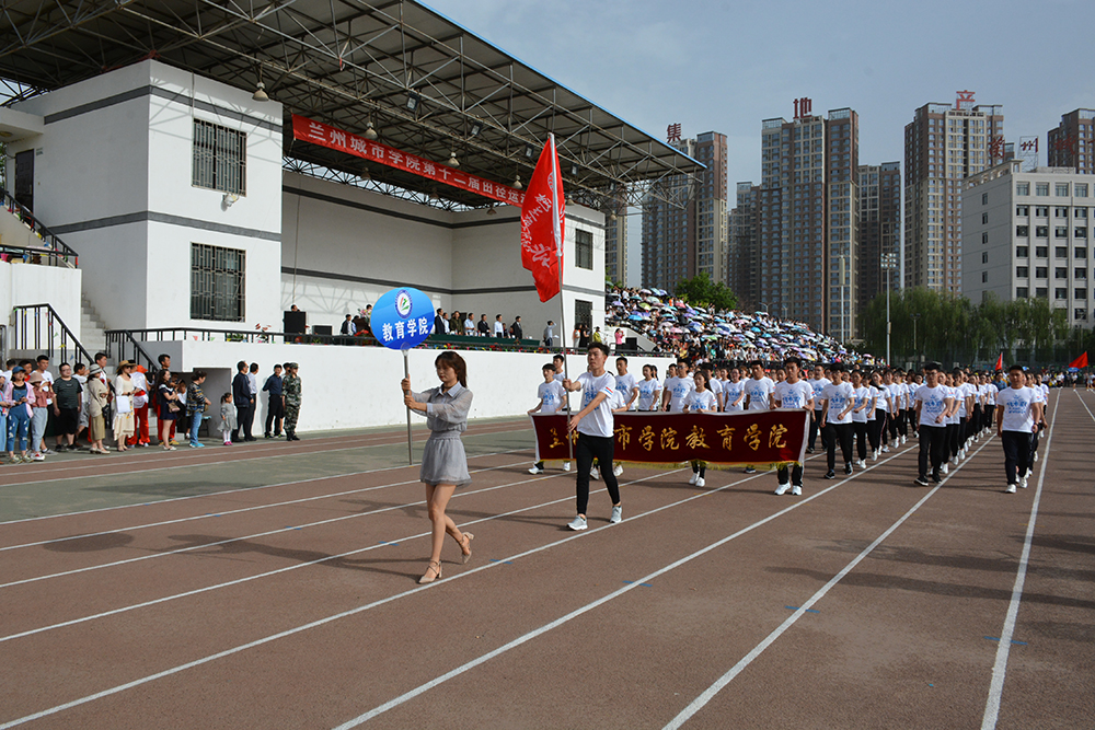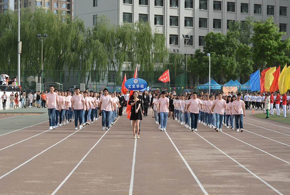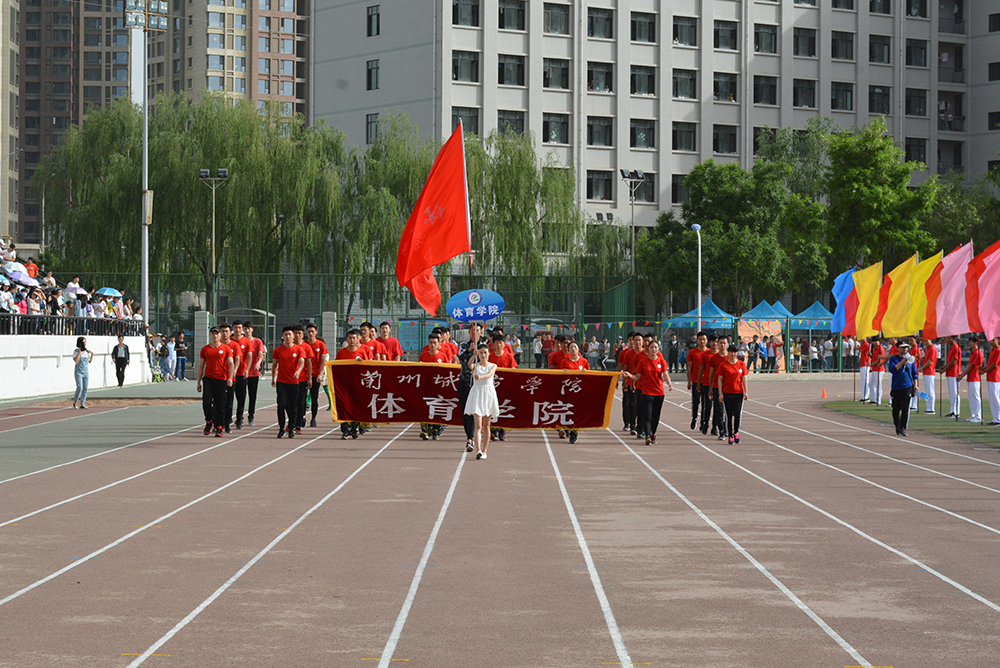 在欢快激昂的运动员进行曲中,国旗队、会徽队、校训队、彩旗队、表演队、裁判员队伍和各学院、各单位代表队精神抖擞,意气风发,步伐整齐,喊着嘹亮的口号依次入场。