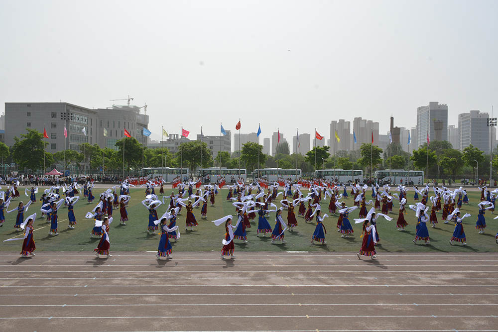体育学院152班马芳芳、体育学院老师崔明分别代表全体运动员、全体裁判员宣誓。随后,体育学院表演的《武动盛世》《鼓舞青春》,幼儿师范学院表演的《雪域欢歌》、音乐学院表演的团体舞《五彩的梦》等节目精彩纷呈,博得了现场观众的阵阵掌声。