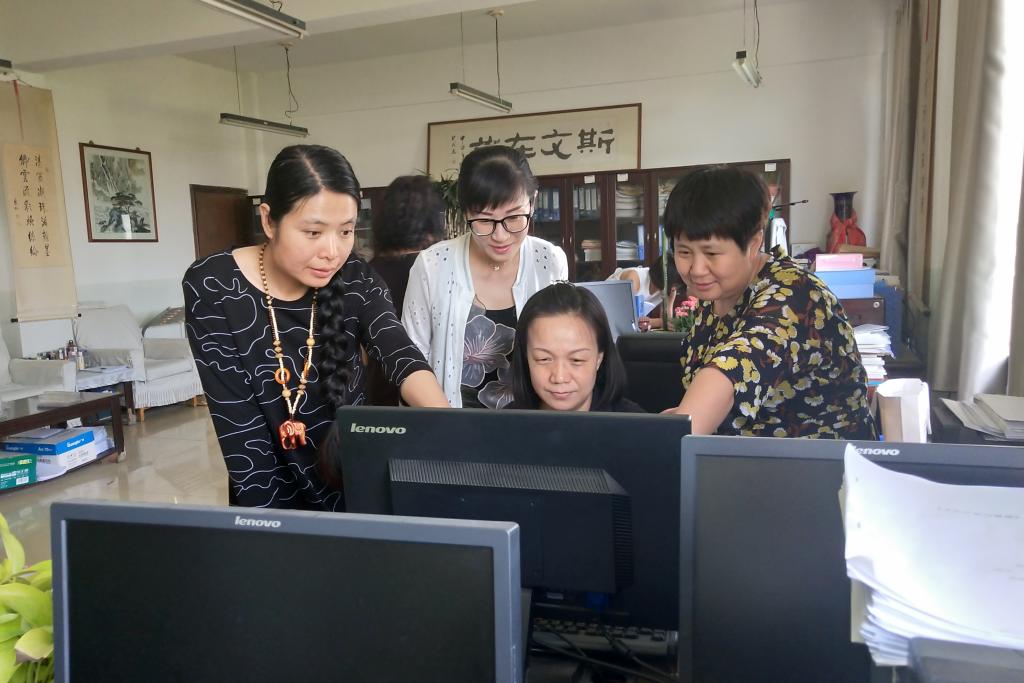专业建设团队成员讨论人才培养方案。