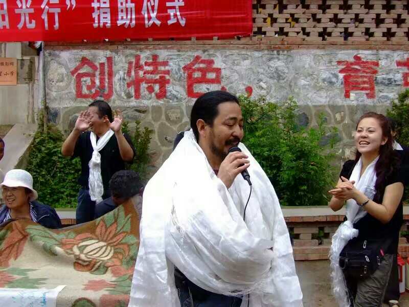 他曾多次组织、参加助学活动,给学校、孤儿院捐钱捐物,组织募捐义演。孩子们渴望的眼神就是他一路向西的明灯。