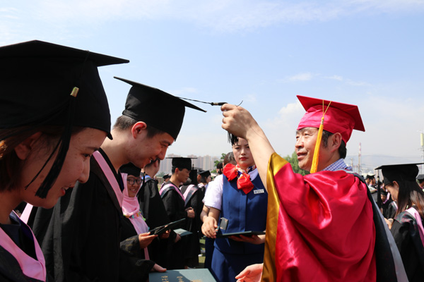 6月21、22日,beat365在线唯一官网2018届学生毕业典礼暨学位授予仪式分别在东校区礼堂、校本部体育场、培黎校区大学生活动中心隆重举行。校领导陈晓龙、张有明、王基、姜秋霞、莫超、牟录贵、赵有翼,校学位评定委员会委员,相关部门及各二级学院负责人,教师代表及2018届毕业生参加了典礼。典礼分别由党委副书记王基,校党委常委、副校长牟录贵主持。