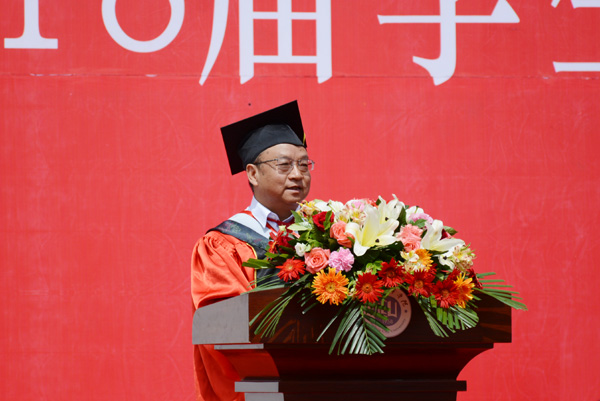 校长张有明在典礼上发表了热情洋溢的致辞。他代表学校向3000余名毕业生表示热烈的祝贺,向四年来辛勤培养他们的老师和父母表示衷心的感谢,对他们即将踏上人生新的旅程表示美好的祝愿!