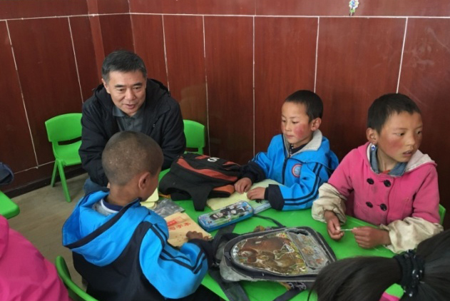 沈建洲教授和乡村幼儿园的孩子在一起。
