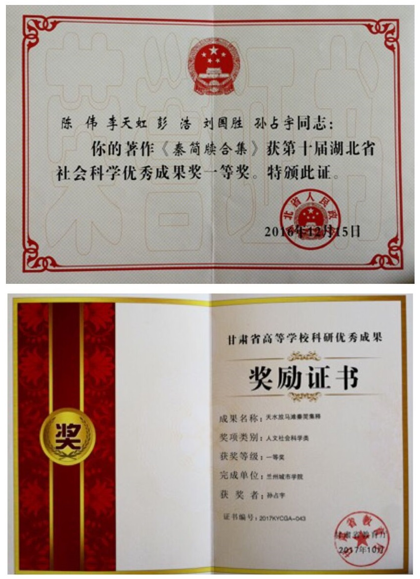 团队成员的研究成果也得到了学界认可。2016年10月,孙占宇专著《秦简牍合集(四):放马滩秦墓简牍》荣获得甘肃省高等学校科研优秀成果奖一等奖;其后,包括该书在内的《秦简牍合集》再次获得湖北省社会科学优秀成果奖一等奖。2017年10月,孙占宇专著《天水放马滩秦简集释》获甘肃省高等学校科研优秀成果奖一等奖。2017—2018年,beat365在线唯一官网简牍研究所与甘肃简牍博物馆等单位合办的学术辑刊《简牍学研究》连续出版了第六、七辑,受到学界好评,也在一定程度上提升了该学科的学术影响力。