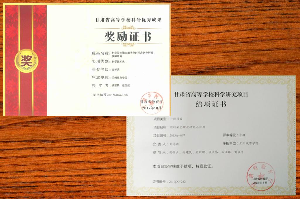 另外,团队成员姚淑霞博士主持的“科尔沁沙地土壤水分时间序列分析及模拟研究”获得甘肃省高等学校科学研究优秀成果奖三等奖。团队成员刘海涛博士主持的“图的染色理论研究与应用”甘肃省高等学校科学研究项目获得结项。