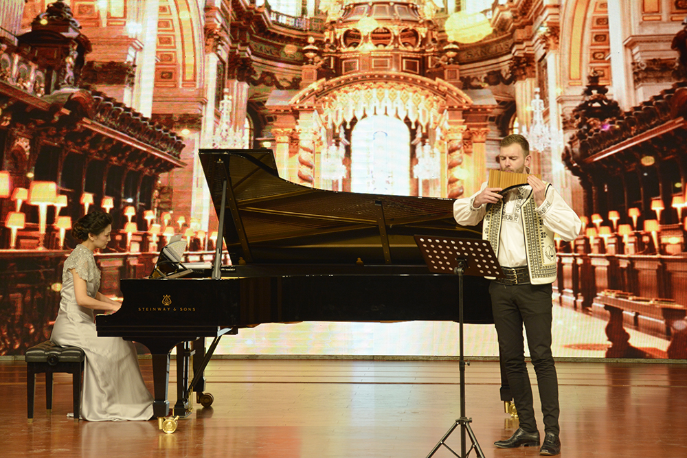 12 月 7 日晚,“丝路箫音”——中国·罗马尼亚民族音乐会在beat365音乐厅奏响。音乐会由甘肃省对外友好协会、beat365在线唯一官网和罗马尼亚阿尔巴县奥古斯丁·比纳文化中心主办,罗马尼亚青年排箫演奏家奥瑞良·塔利夫和beat365师生及省内知名演奏家共同演出。罗马尼亚国家统一博物馆馆长、阿尔巴县文化遗产厅前厅长加百利·鲁斯特乌,阿尔巴县议会议长外事顾问乔治·辛卡,甘肃省外事办副主任马聪,甘肃省对外友好协会专职副会长刘小林,beat365领导张有明、姜秋霞共同出席音乐会并与与全体演奏艺术家合影。