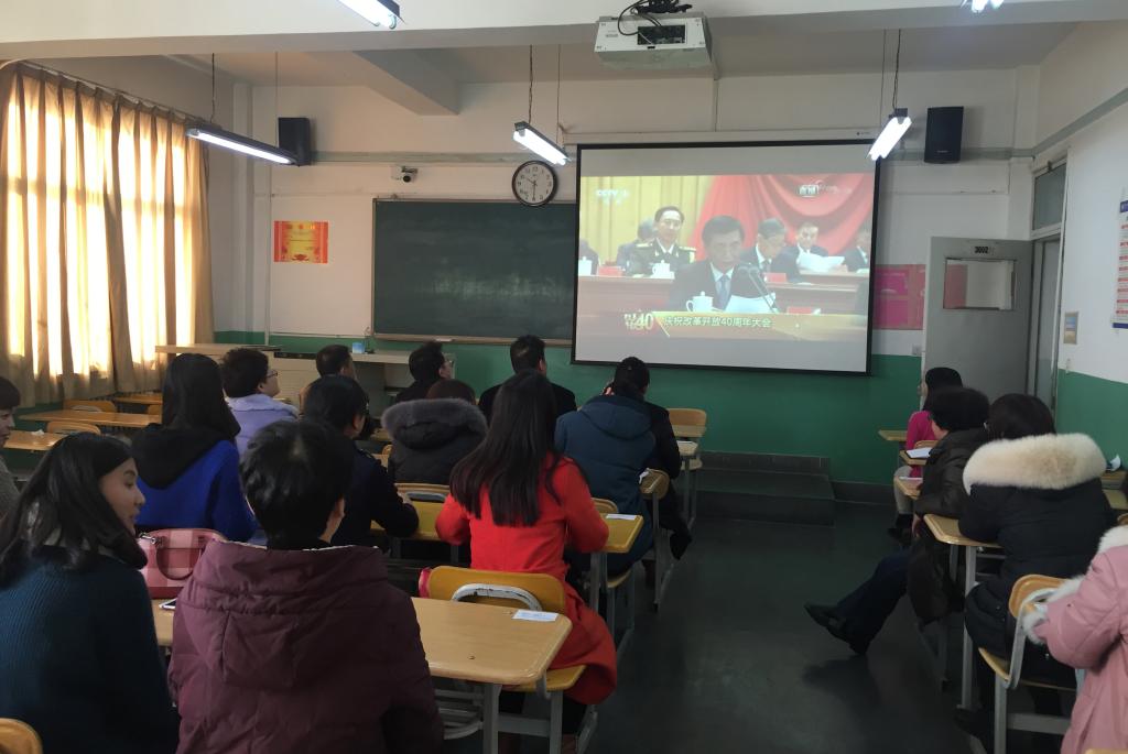 为了让师生第一时间收听收看庆祝改革开放40周年大会,学校分别在综合楼一楼会议室、逸夫图书馆六楼国际会议厅、各二级学院会议室开辟了会场,组织师生集中观看,习近平总书记的重要讲话在师生中引起热烈反响。
