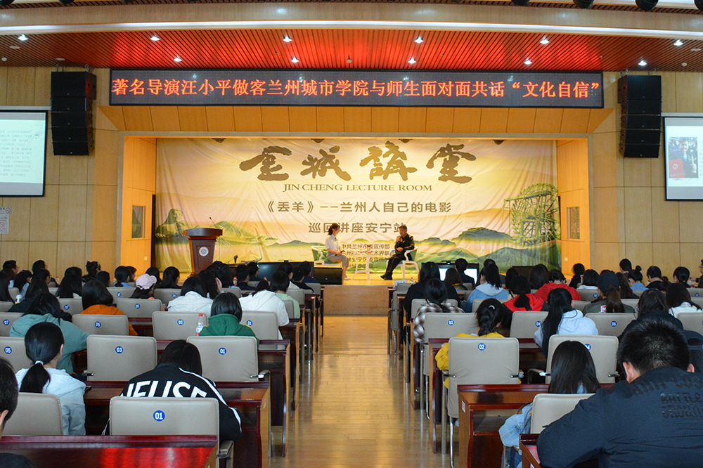 汪小平以由自己执导的电影《丢羊》为主线,和大家分享了《丢羊》的灵感来源、创作初衷和艺术价值,讲述了自己在电影创作过程中、参加华表奖颁奖典礼发表获奖感言时台前幕后的小故事,阐述了自己对文化自信和树立本土文化品牌的理解。对于文化自信,他认为,一个文化强国需要有能够影响世界的文化名人,有改变世界的文化事件,有能让人自觉接受的文化产品。针对挖掘本土文化、树立本土文化品牌的问题,他认为,精致的城市要有精致的人和理念,兰州这个城市不缺乏文化,也不缺乏优秀作品,但是缺乏文化输出。他希望,一部电影的获奖仅仅只是个开始,甘肃本土文化要能够推出更多的优秀作品,让更多的作品走出去,让各个文艺门类、各个文化领域都有拳头作品,要得到别人的认可,更重要的是用自己的文化去影响别人。他给有志于此的青年学子提出了几点建议,一是要熟知文化和历史,有深厚的文化积淀;二是要敢于立足本土文化,不要自卑;三是要学会表达和呐喊,树立本土文化品牌光是守望和坚持是不够的,要主动发出自己的声音。他鼓励学子“都没有做,怎么知道你不行”,忠告学子“用业余的心态、专业的精神去做事”。整场讲座中,汪小平字字句句都流露出对中国文化的自信、对甘肃本土文化的自信,以及自己作为一个中国人、一个兰州人的自豪感,深深感染了在场师生,现场掌声不断。
