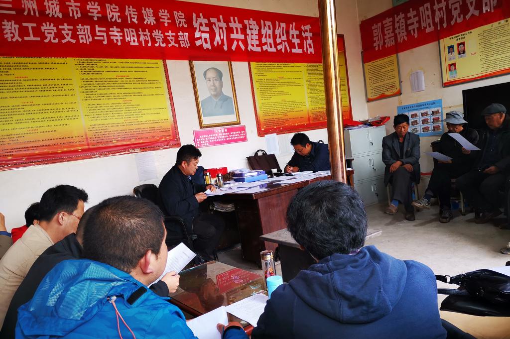 在传媒学院教工党支部党员与寺咀村党支部党员结对共建组织生活中,传媒学院党委负责人为寺咀村的党员干部解读了习近平总书记参加十三届全国人大二次会议甘肃代表团审议时的重要讲话和省委关于脱贫攻坚的重大部署及具体要求。双方党支部负责人分别介绍了本支部党建工作情况,双方党员开展结对互认,共同畅谈党建经验和工作生活情况。双方商定,要按照工作方案,互访互学,把结对共建工作做实做好,为高校与帮扶贫困村共同做好党建工作共建探索一条有效途径。传媒学院教工党支部要利用自身技术优势,为寺咀村制作宣传短片,宣传好寺咀村的产业、党建和脱贫攻坚工作;寺咀村党支部要利用脱贫攻坚主战场的优势,为传媒学院教师进行与精准扶贫、精准脱贫有关的实践研究提供有力支持。大家一致认为,党组织结对共建活动,搭建了高校和贫困村沟通的桥梁,是一次互相学习提高的好契机,也是推动基层党建工作的好举措,形式新颖,收获颇大。