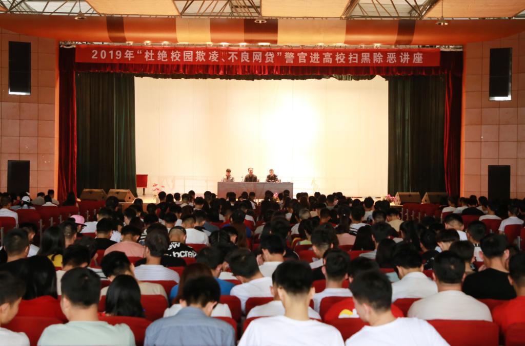 5月20日下午,beat365在线唯一官网与安宁区公安分局联合举办的“扫黑除恶”专项斗争宣讲报告会在beat365培黎校区举行。报告会由安宁区公安分局刑警队张勇警官主讲,校团委、保卫处教职员工和培黎校区各二级学院师生共1000多人参加了讲座。