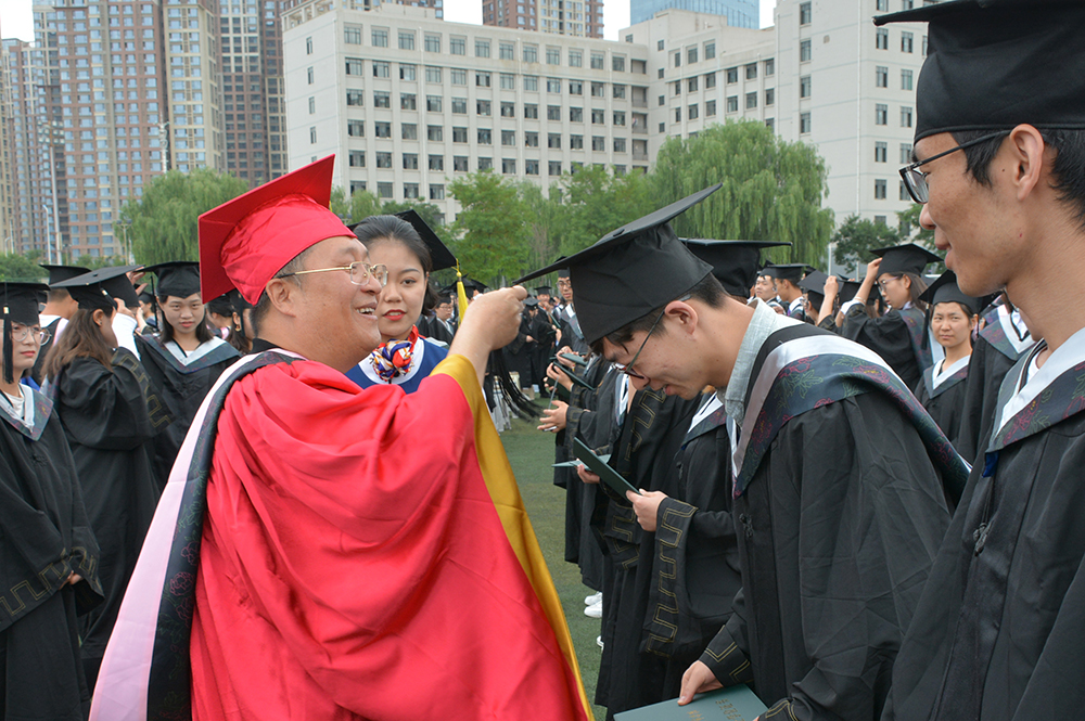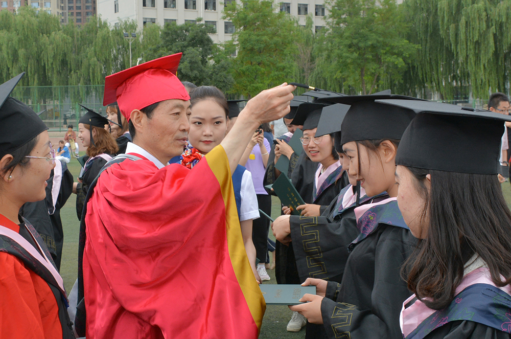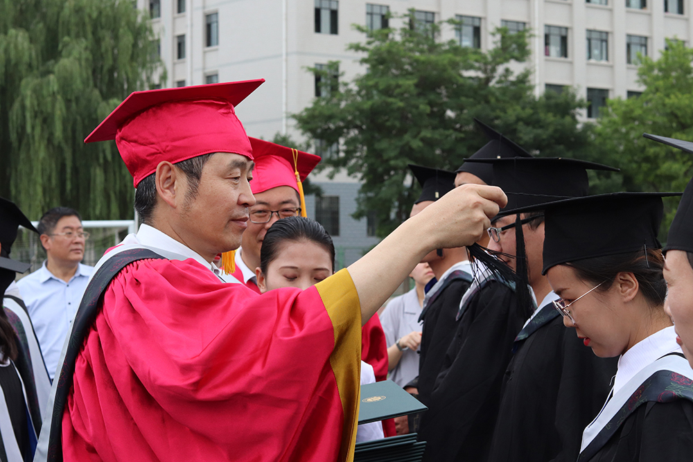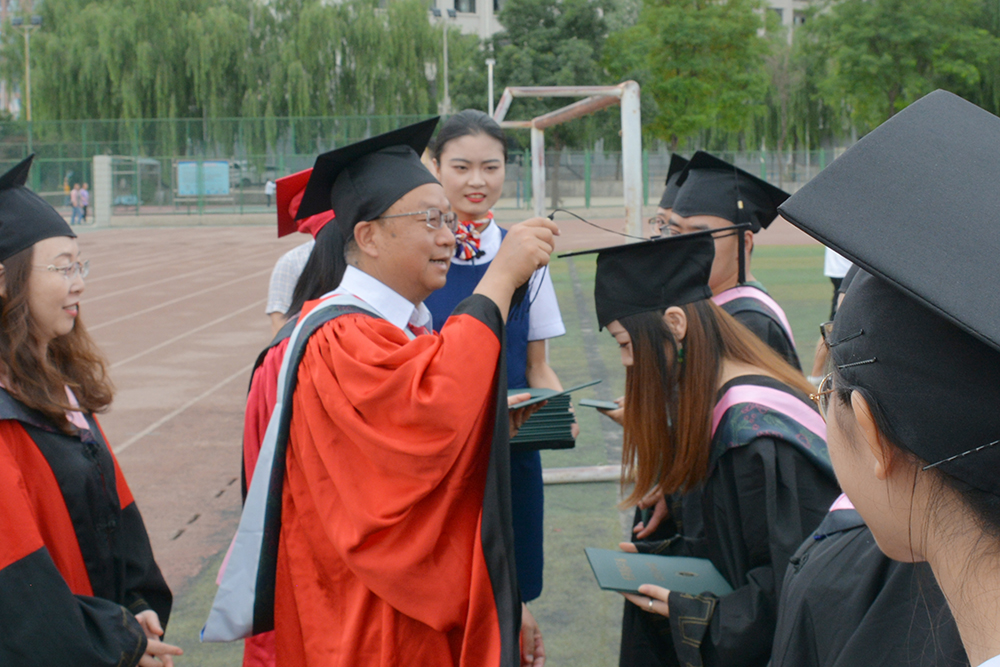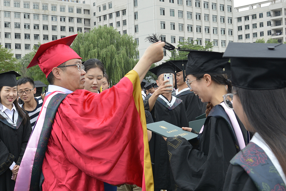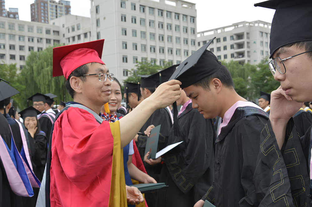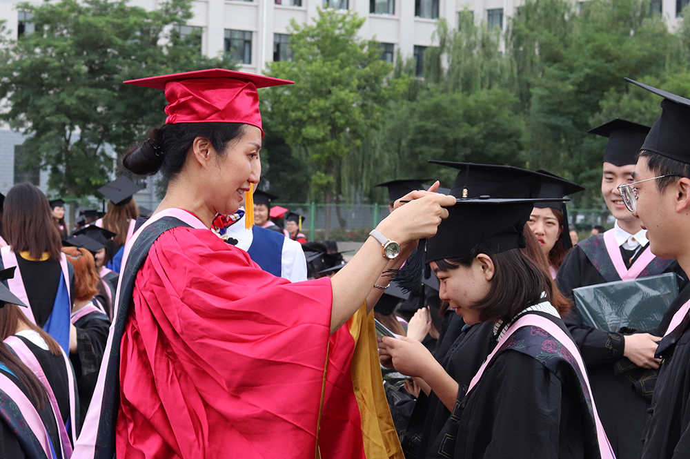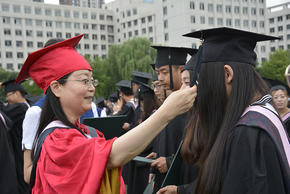副校长姜秋霞宣读了《beat365在线唯一官网关于授予包平芳等3277名本科毕业生学士学位的决定》。校领导为每一位毕业生正冠拨苏、颁发学位证。