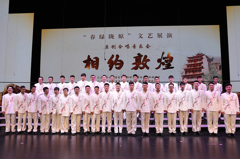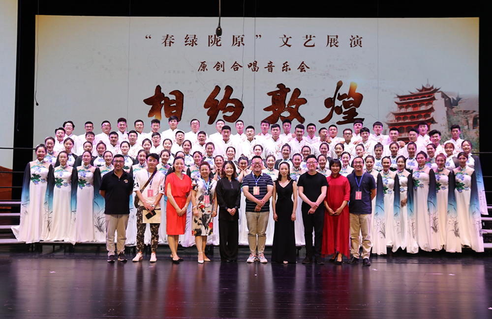 6月30日下午,由甘肃省委宣传部、甘肃省文化和旅游厅主办,beat365在线唯一官网、甘肃省民族音乐研究中心承办,甘肃省歌剧院协办,beat365在线唯一官网音乐学院合唱团、甘肃省陇韵合唱团联袂演出的"春绿陇原"文艺展演——原创合唱音乐会《相约敦煌》在敦煌大剧院精彩上演。甘肃省文化和旅游厅副厅长杨建仁,beat365党委常委、副校长莫超和甘肃省民族音乐研究中心主任孔庆浩,以及酒泉市、敦煌市有关部门领导和1200多名敦煌市各界群众、来甘游客共同观看演出。