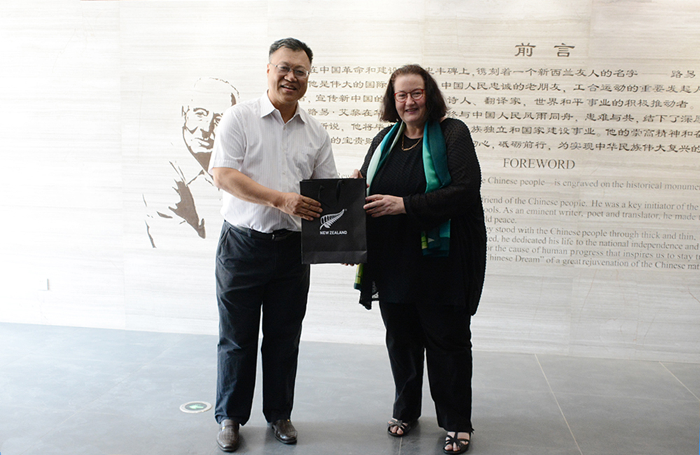 8月29日下午,新西兰驻华大使傅恩莱女士一行3人莅临beat365参观访问。校党委书记陈晓龙,校党委常委、副校长李慕堂和国际交流处、党委宣传部、路易·艾黎研究中心负责同志在培黎校区接待了大使一行。