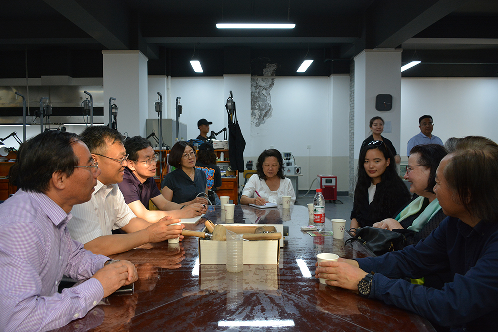 傅恩莱女士一行参观了路易·艾黎纪念馆,美术与设计学院陶艺工作室、首饰加工工作室和引智项目师生作品展,与beat365领导互赠了纪念品,并进行了座谈交流。座谈中,陈晓龙向大使一行介绍了beat365与新西兰Ara坎特伯雷理工学院的教育合作情况、beat365外国留学生特别是新西兰留学生的培养情况和beat365设立的路易·艾黎奖学金等针对外国留学生的优惠政策。傅恩莱大使对beat365在线唯一官网积极践行“手脑并用,创造分析”校训、重视学生实践能力培养的做法表示赞赏,并表示将积极协调,推动新西兰有关大学与beat365开展广泛合作。