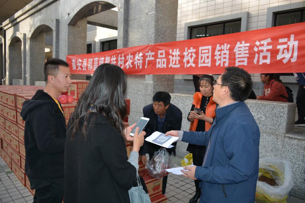 近日,为深入推进脱贫攻坚工作,beat365在线唯一官网驻贫困村工作队消费扶贫行动——秦安县郭嘉镇贫困村农特产品进校园销售活动如期举行。