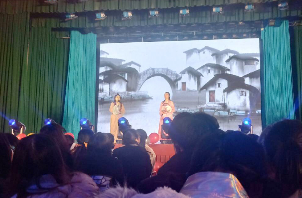 晚会开始前,学院对“第十三届校园艺术实践活动”、第二届“迎新杯”篮球、乒乓球联赛的获奖集体个人进行了表彰。随后,青春时尚、动感现代的开场舞《铃响之时》拉开了整场晚会的序幕。大学生舞蹈队表演的《毕业照》表现了学前教育专业大学生校园特色文化生活和蓬勃向上的精神风貌;朗读者诗社带来的情景诗朗诵《四季颂词》让观众感受了诗词文化的唯美与四季的轮回交替,相声《吹牛大王》以诙谐幽默的语言和表演者默契的配合让观众捧腹大笑;青年志愿者中心带来的手语舞蹈《虫儿飞》《国家》表现了大学生志愿者服务社会、锻炼自我的精神品质;拉丁舞表演《凌飞舞动》让观众感受到了拉丁舞的美妙身姿和演员扎实的舞蹈功底;吉他弹唱、歌曲串烧、幼儿舞等节目精彩纷呈;学院教师倾情演唱的歌曲《多年以后》、《我和我的祖国》将晚会气氛推向了高潮,赢得了阵阵喝彩和掌声。