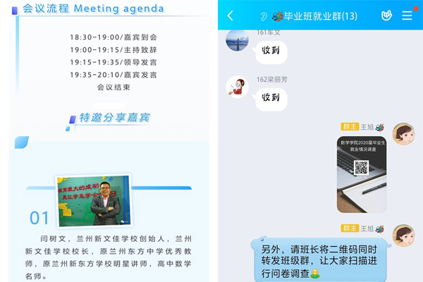 为引导毕业生树立先就业后择业的观念,更好地推动2020届毕业生就业创业工作,4月20日晚,数学学院召开了2020届毕业生“云上”求职分享会第一次会议。学院领导、相关教师和2020届毕业生共100余人参加会议。会议同时发放了全院毕业生就业情况调研问卷。
