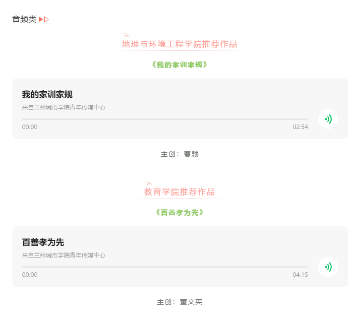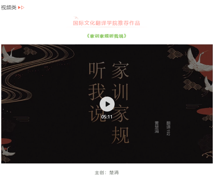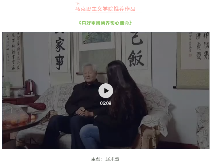 传承五四精神,弘扬中华美德。为纪念“五四”运动101周年,引导beat365广大青年学生弘扬中华美德、传播良好家风,积极培育和践行社会主义核心价值观,倡导和形成孝老爱亲、勤俭持家、廉洁自律、崇德重礼的良好风尚,校团委结合学校防疫工作,充分利用网络平台优势,引导广大青年学生倾听家中长辈讲述家训家规故事,并以录制音视频的形式参与网络展播活动。活动得到了广大青年学生的积极响应,大家纷纷拿起手机,用录制音、视频的方式,展示了各自家庭关于家训家规的故事。截至目前,活动共收到来自18个学院的76份参展作品,部分优秀作品正在各级团属校园媒体中进行展播。
