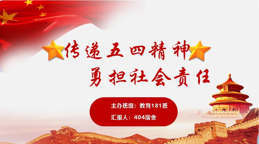 为纪念五四运动101周年,深学笃用习近平总书记给北大援鄂医疗队全体“90后”党员的回信精神,激励和引领广大青年大学生大力弘扬以爱国主义为核心的伟大民族精神,传承五四精神,校团委组织开展了“传承五四精神,勇担社会责任”网络主题团日活动。
