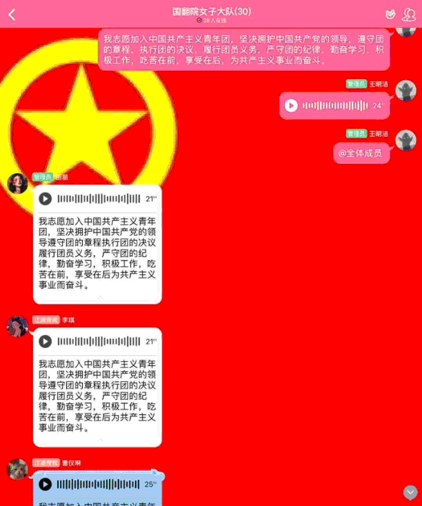国际文化翻译学院组织各团支部开展重温入团誓词活动