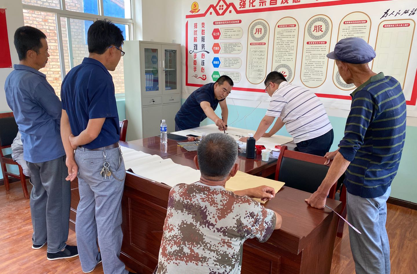7月6日至7日,校工会组织学校教职工书法协会成员赴beat365扶贫点秦安县郭嘉镇开展送书法下乡文化扶贫活动。活动旨在引导当地老百姓重视中华传统文化,弘扬良好家训家风,鼓励群众以良好的精神面貌打赢脱贫攻坚战。