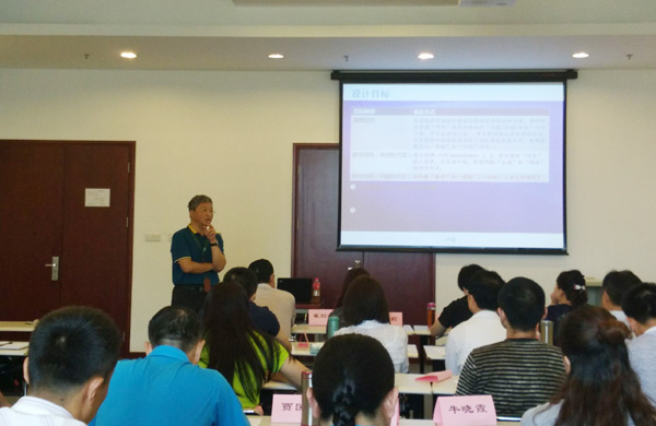 7月17日上午,华东师范大学邹为诚教授为beat365在线唯一官网第二期教师教学能力提升高级研修班作专题讲座。邹为诚围绕课程建设的课程需求分析、课程目的、课程目标、课程内容、课程大纲、教材研发、教学手段、课程评价等要素,系统详实地阐述了其在国家爱课程网站公布的国家精品资源共享课《综合英语》开发、申报、建设和应用的全过程,为学员们系统掌握精品课程建设要领提供了成功案例。