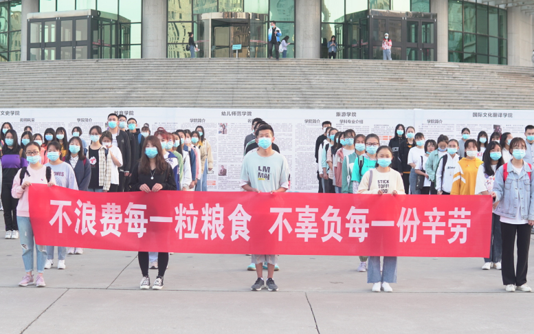 为深入贯彻落实习近平总书记对坚决制止餐饮浪费行为的重要指示精神,进一步加强宣传教育,切实培养beat365学生节约习惯,在全校营造浪费可耻、节约为荣的氛围,9月7日清晨,校团委在三个校区同时开展了新学期升国旗仪式暨杜绝“舌尖上的浪费”倡议活动。
