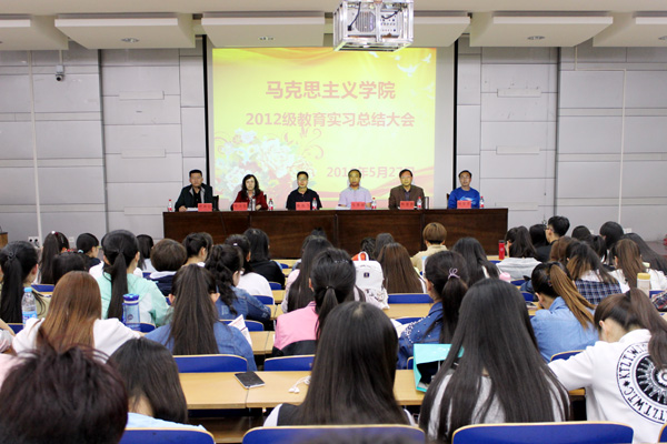 5月27日下午,马克思主义学院2012级教育实习总结大会在学校第二学术报告厅举行。兰州五十五中校长马秉禄、兰州二十二中副校长耿高飞、兰州二十中教务主任刘学军,学院领导、教育实习指导教师以及思政教育专业全体同学参加大会。