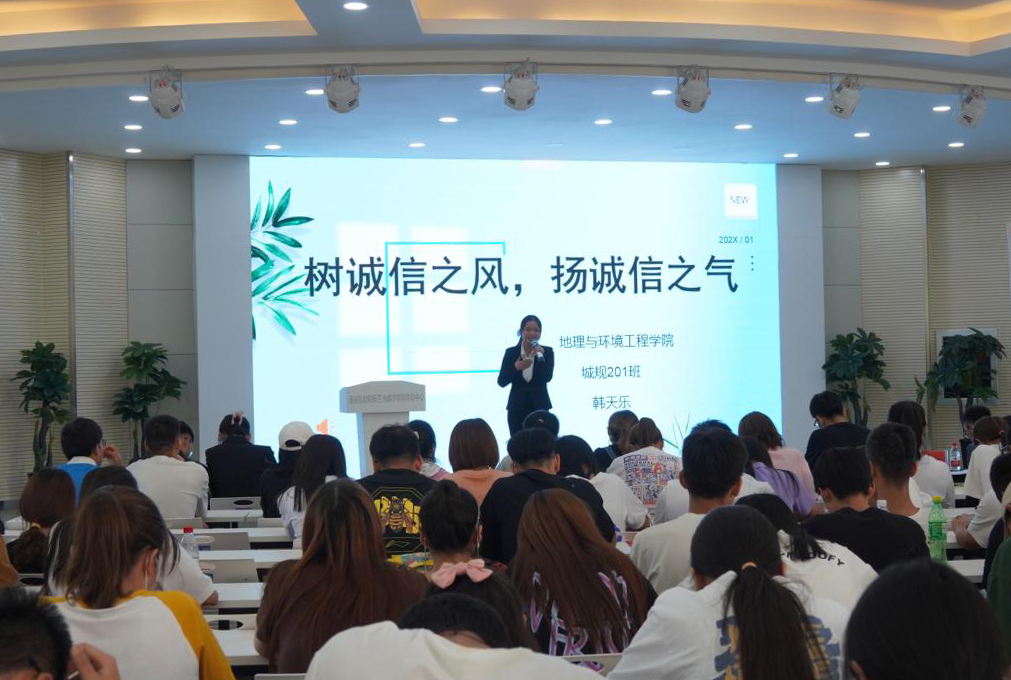 6月3日下午,党委学生工作部(学生工作处)主办的“诚信教育·筑梦未来”主题演讲比赛决赛在大学生活动中心二楼邑谷体验馆举行, 100名余同学现场观赛。