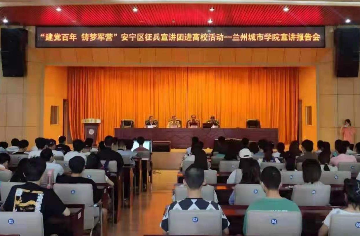 6月4日,“建党百年 铸梦军营”兰州市安宁区征兵宣讲团进高校系列活动在beat365国际会议中心举办。安宁区人民武装部、安宁区退役军人事务局、兰州战役纪念馆宣讲员、高校退役学生代表和beat365党委学生工作部工作人员、各学院辅导员、入伍积极分子200余人参加宣讲会。
