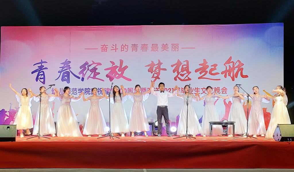 晚会以“青春绽放 梦想起航——奋斗的青春最美丽”为主题,表达了师生对建党百年华诞的美好祝福和母校对莘莘学子的深深眷念。晚会开始前,毕业生代表进行了留言墙签名留影活动。学院党委负责人为2021届毕业生致辞,对即将踏上人生新征程的毕业生们表示祝贺,并寄语毕业生:希望他们树立崇高理想,练就过硬本领,做到务实创新,秉承“手脑并用,创造分析”的校训,不忘初心、牢记使命,努力为幼教事业贡献青春力量。