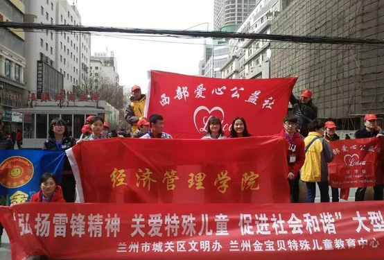 3月4日,经济管理学院组织部分青年志愿者参加了由兰州市城关区文明办主办,西部爱心公益社承办的“弘扬雷锋精神关爱特殊儿童促进社会和谐”大型志愿者倡导活动。活动中,志愿者们冒着寒风给路人宣讲雷锋精神,唤醒公益之心,并义卖智障儿童的手工作品为金宝贝特殊教育中心筹款。