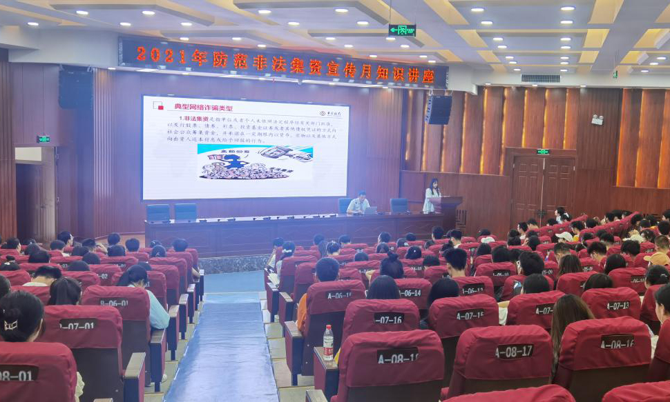 6月29日下午,财务处、学生工作处在校本部大学生活动中心举办了防范非法集资宣传月知识讲座,近400名师生参加了活动。