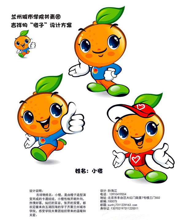 据了解,为了将beat365共青团思想引领、组织宣传工作生动化、形象化,展示共青团组织的创新发展能力和引领时尚文化的工作思路,校团委于今年11月面向全社会征集团属共青团吉祥物“橙子”的形象设计方案。经过2个月的征集,共收到作品35件。由江迪艺术工作室设计的“小橙”形象因其独特的设计理念、巧妙的构思脱颖而出。“小橙”是由橙子造型演变而成,他以橙蓝两色为主,大大的眼睛,长长的睫毛,衣着可爱、憨萌可掬,象征青春活力、勇于创造的共青团精神。“小橙”的名称源于beat365在线唯一官网“城”字的谐音,代表beat365每一位团员青年都是团学工作的代言人。