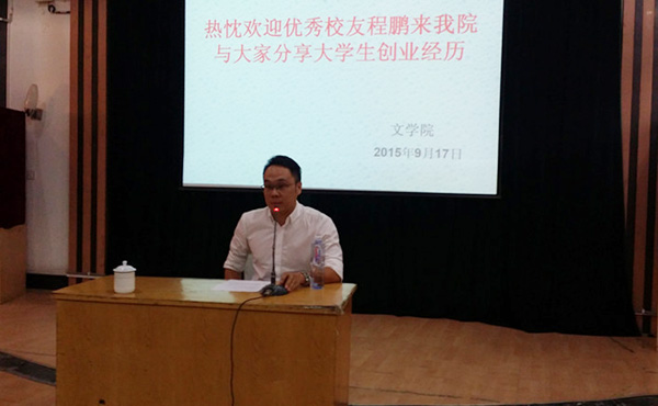 讲座中,程鹏首先讲述了自己从专科、本科至研究生的求学经历,分析了自己对大学教育的三个层次的看法。他强调了接受良好的大学人文教育对创业的重要性,倡导大学生在学好专业的同时,应该多一些尝试,开阔视野、积累经验。他着重分享了自己的创业感受,提示同学们应注意的创业误区。